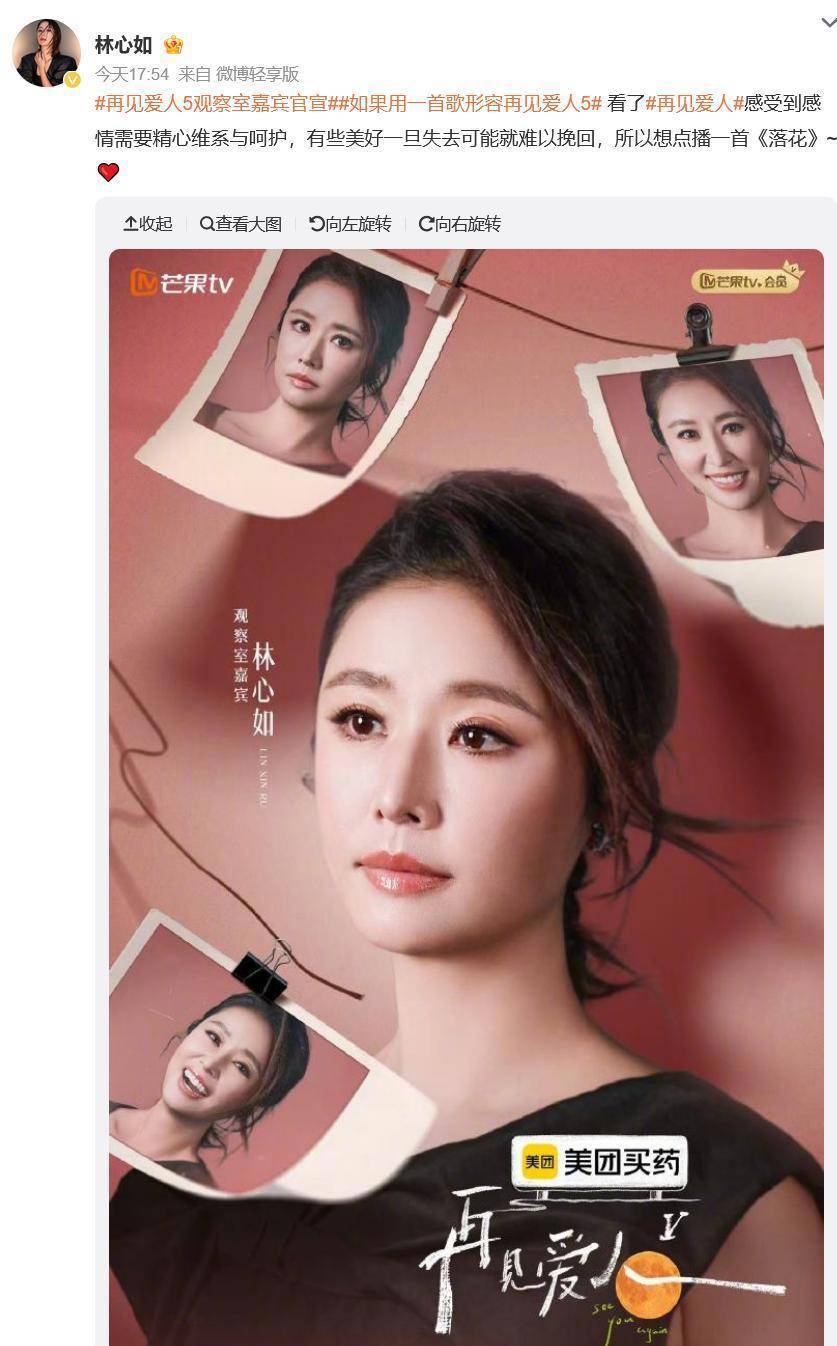 10月15日,林心如的一则官宣在网上炸开了锅,她正式宣布自己作为观察室嘉宾加入《再见爱人5》。