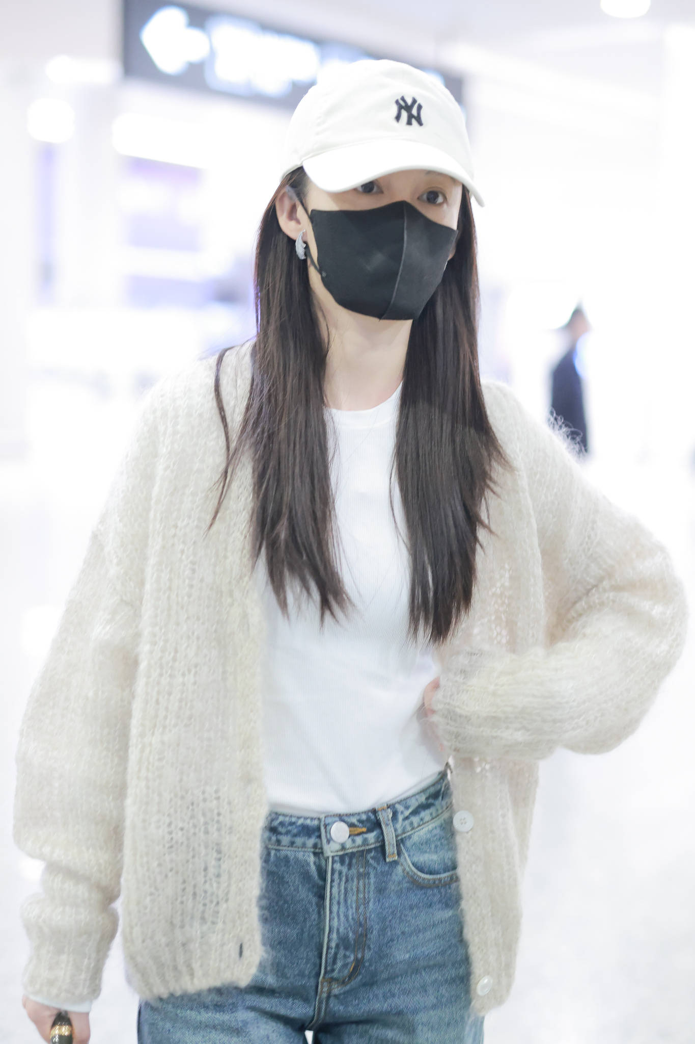 李沁戴着黑色口罩和白色鸭舌帽低调出行。