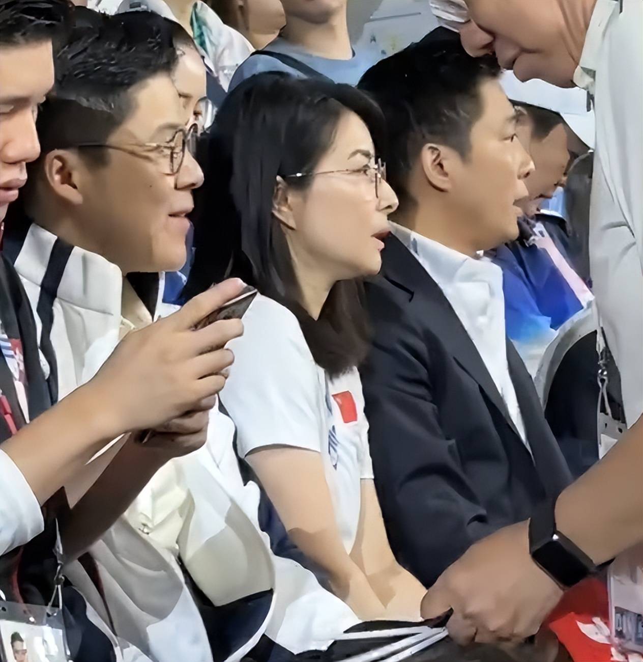 郭晶晶此次不仅是来观赛的,还是来当跳水的裁判长的,她工作时的造型又美又飒,态度专业认真,获得了一致好评。