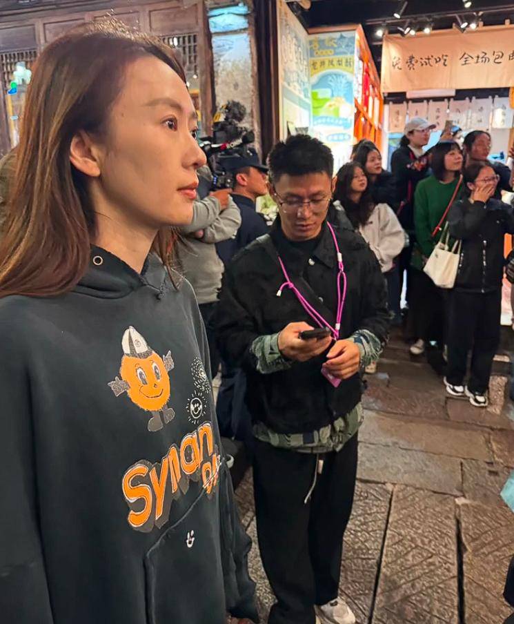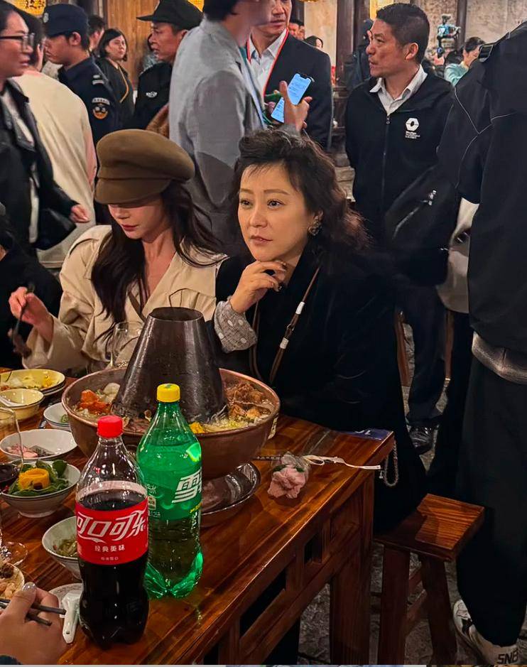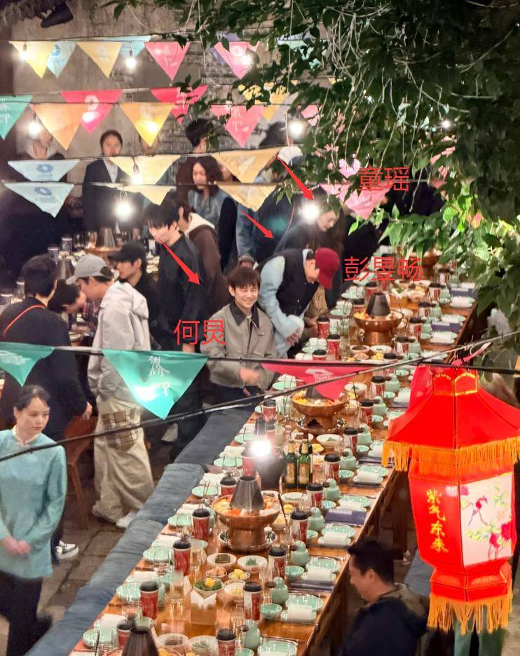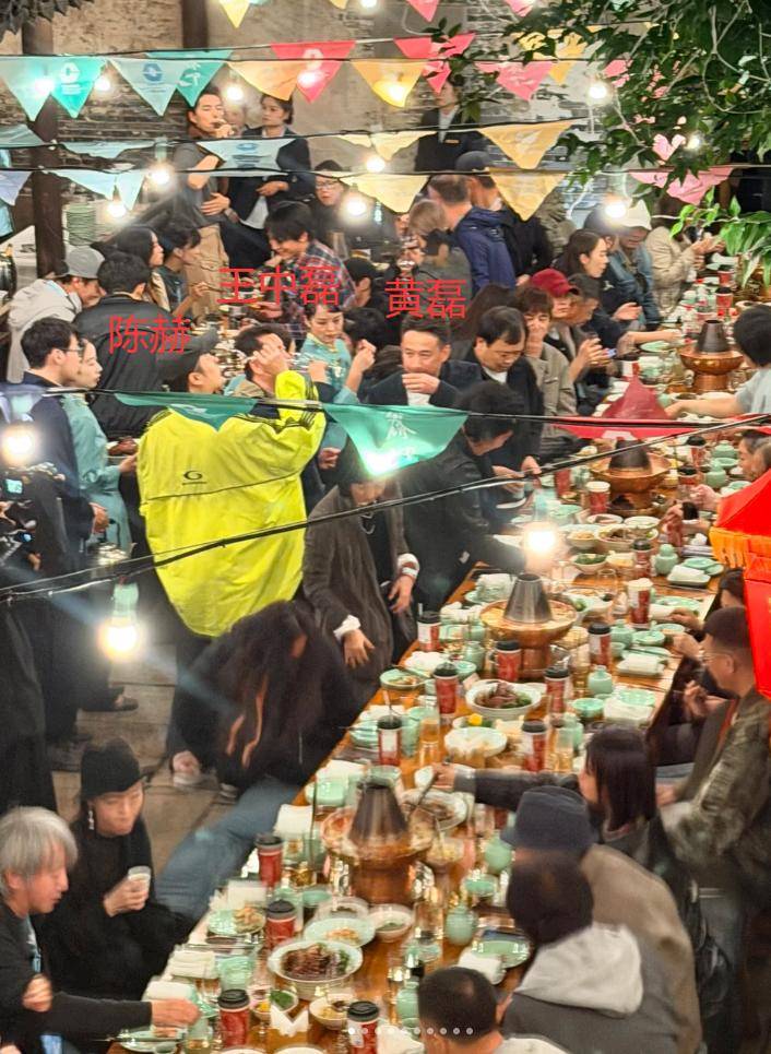 这场“长桌宴”在户外,不少普通游客都看到了在场的明星。