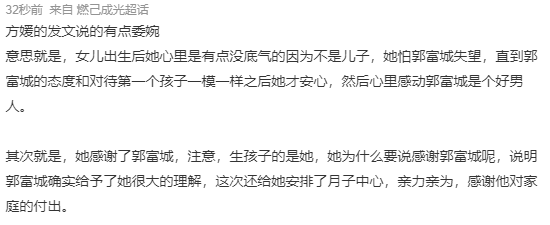 明明生孩子的是她、产妇是她,但她却感谢郭富城,字里行间尽显卑微: