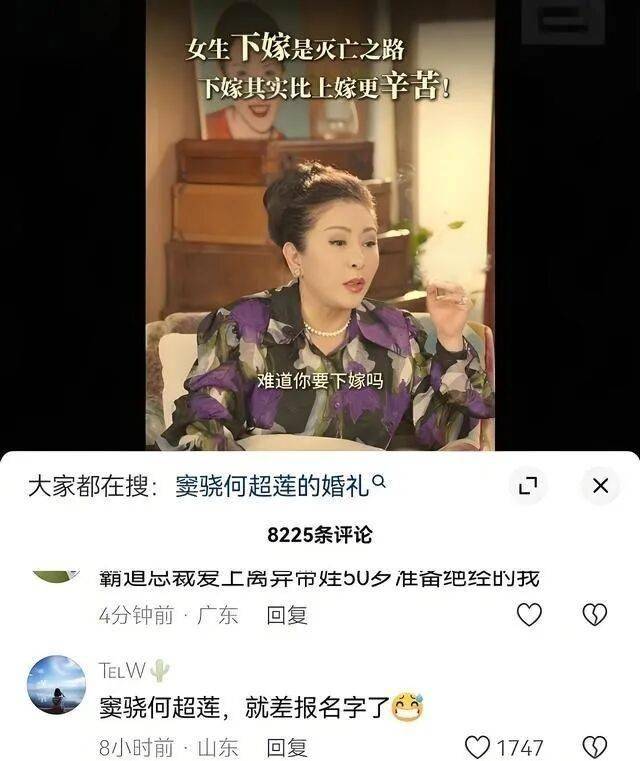 “女人千万别下嫁!” 向太一条没指名道姓的吐槽视频,直接把窦骁和何超莲送上热搜顶峰。更绝的是,当网友在评论区精准 “对号入座” 后,向太干脆利落的点赞操作,相当于把这对昔日恩爱的豪门夫妻的婚变传闻,狠狠钉在了公众视野里。谁能想到,2023 年那场轰动全网的巴厘岛童话婚礼,才过去两年就从 “神仙爱情” 变成了 “一地鸡毛”?