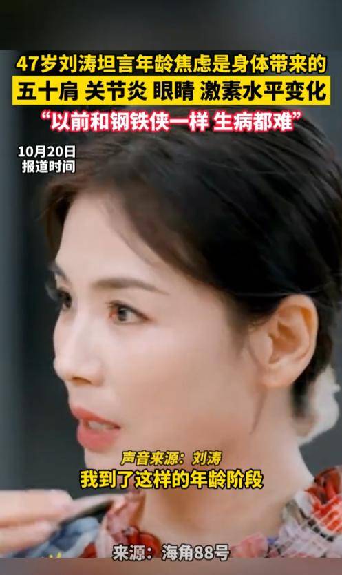 随着岁月的流逝,刘涛逐渐意识到身体的变化和年龄带来的挑战。47岁的她在综艺节目《海角88号》中被问及是否有年龄焦虑时,坦然承认自己确实经历过这样的困扰。她提到,随着年龄增长,眼睛状况、激素水平都有所下降,有时连抬胳膊都变得困难,受凉时膝盖会疼,关节炎也时常困扰着她。这些变化让她不得不学会接受现实,因为过去的她一直感觉自己像“钢铁侠”般无所不能。