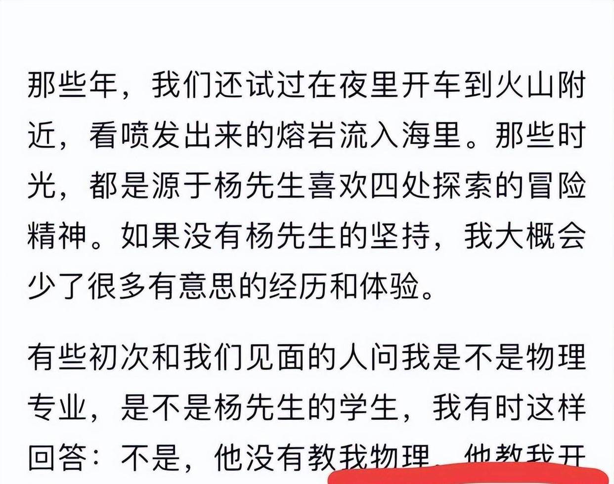 在文章里,她谈及与杨振宁的那些“冒险”往昔,言语之中满是幸福之感,“倘若不是杨先生执意坚持,我或许会错过许多有趣的经历与体验”。