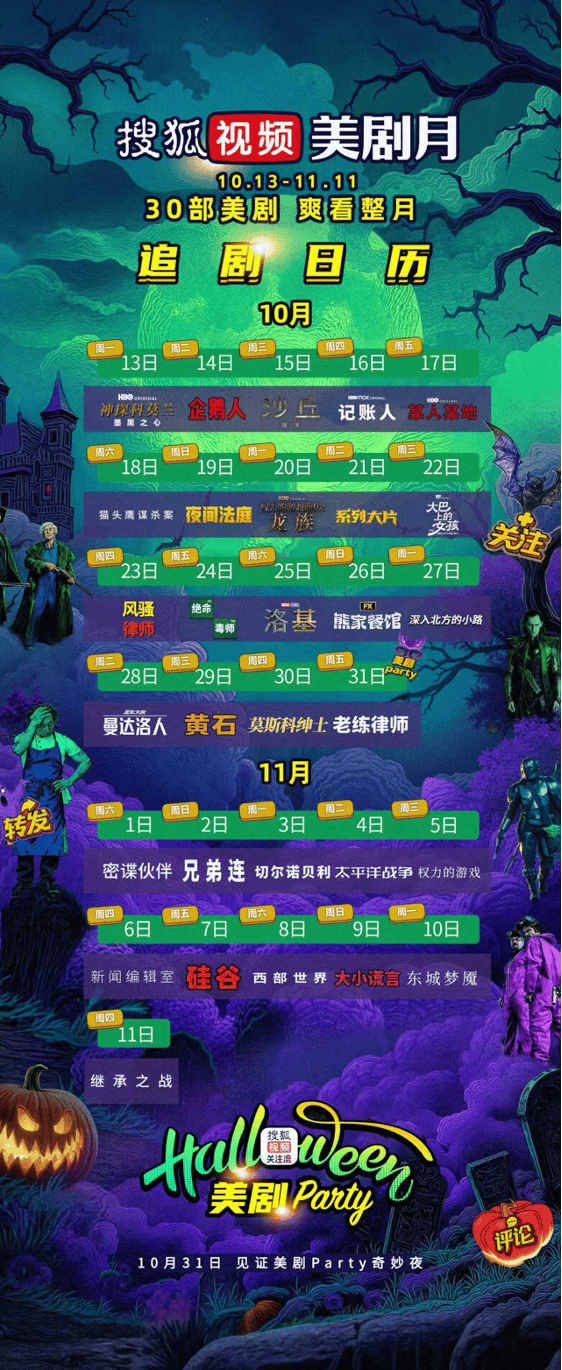 此次搜狐视频美剧月更多美剧更新,可关注搜狐视频美剧频道专栏,期待搜狐视频美剧派对活动的更多官宣信息,共度美剧之夜,齐聚一堂,享搜狐视频“美剧月”追剧盛宴,锁定搜狐视频APP关注流。