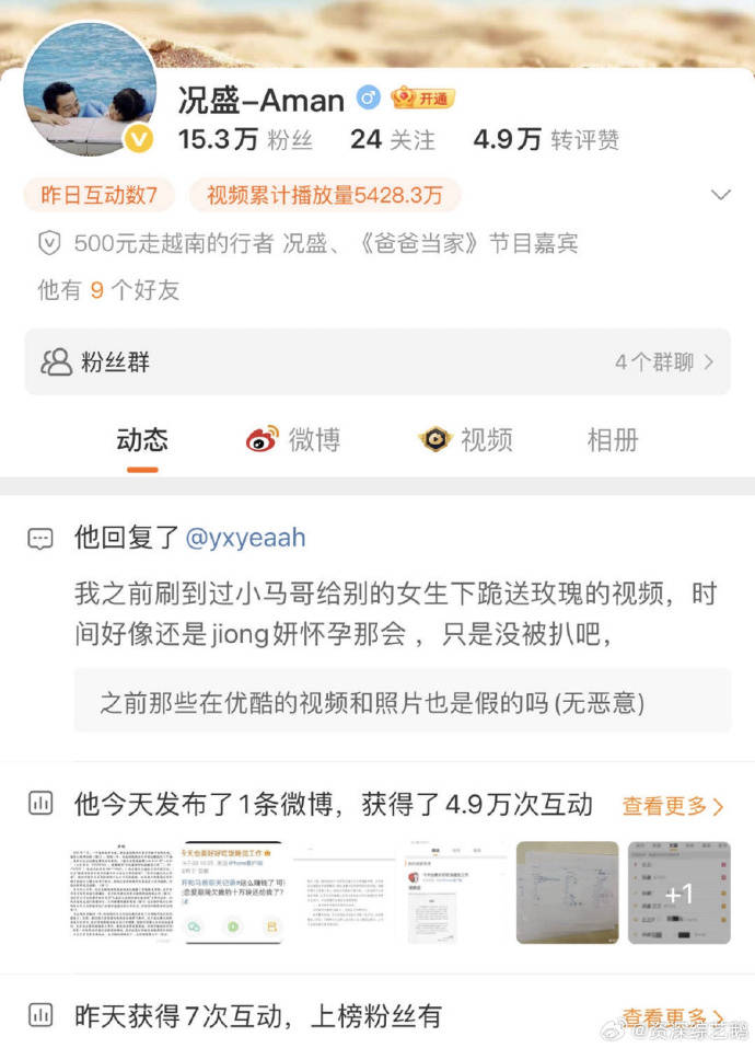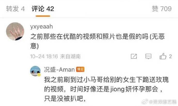 原创 况盛发声明后,评论区留言:马杨给别的女生下跪送玫瑰