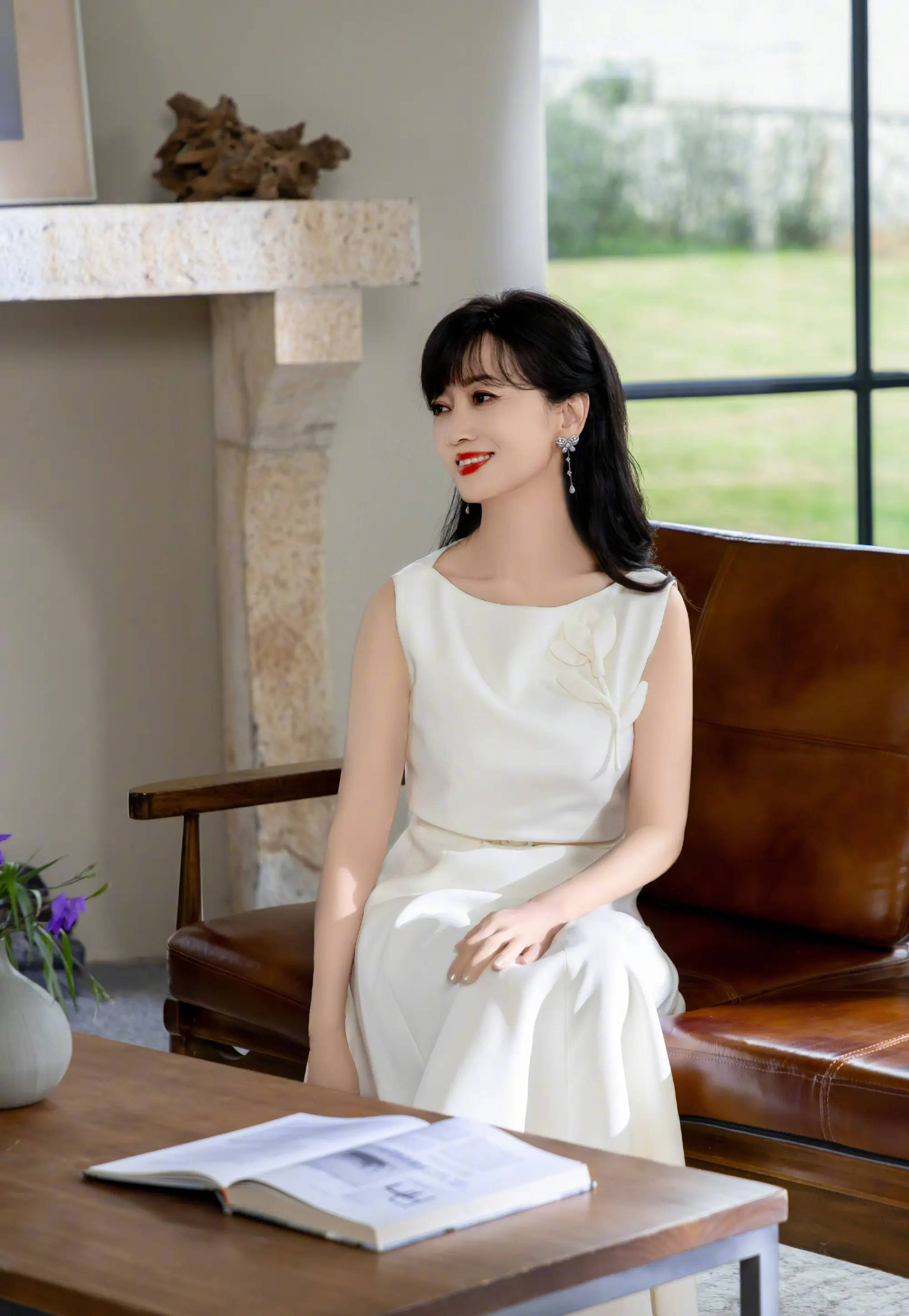 赵雅芝穿白色无袖连衣裙清新靓丽。