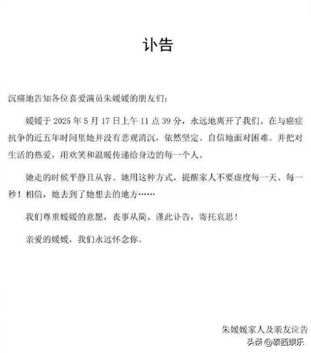 直到2025年5月17日上午11点39分,这位坚强的女性还是永远离开了。