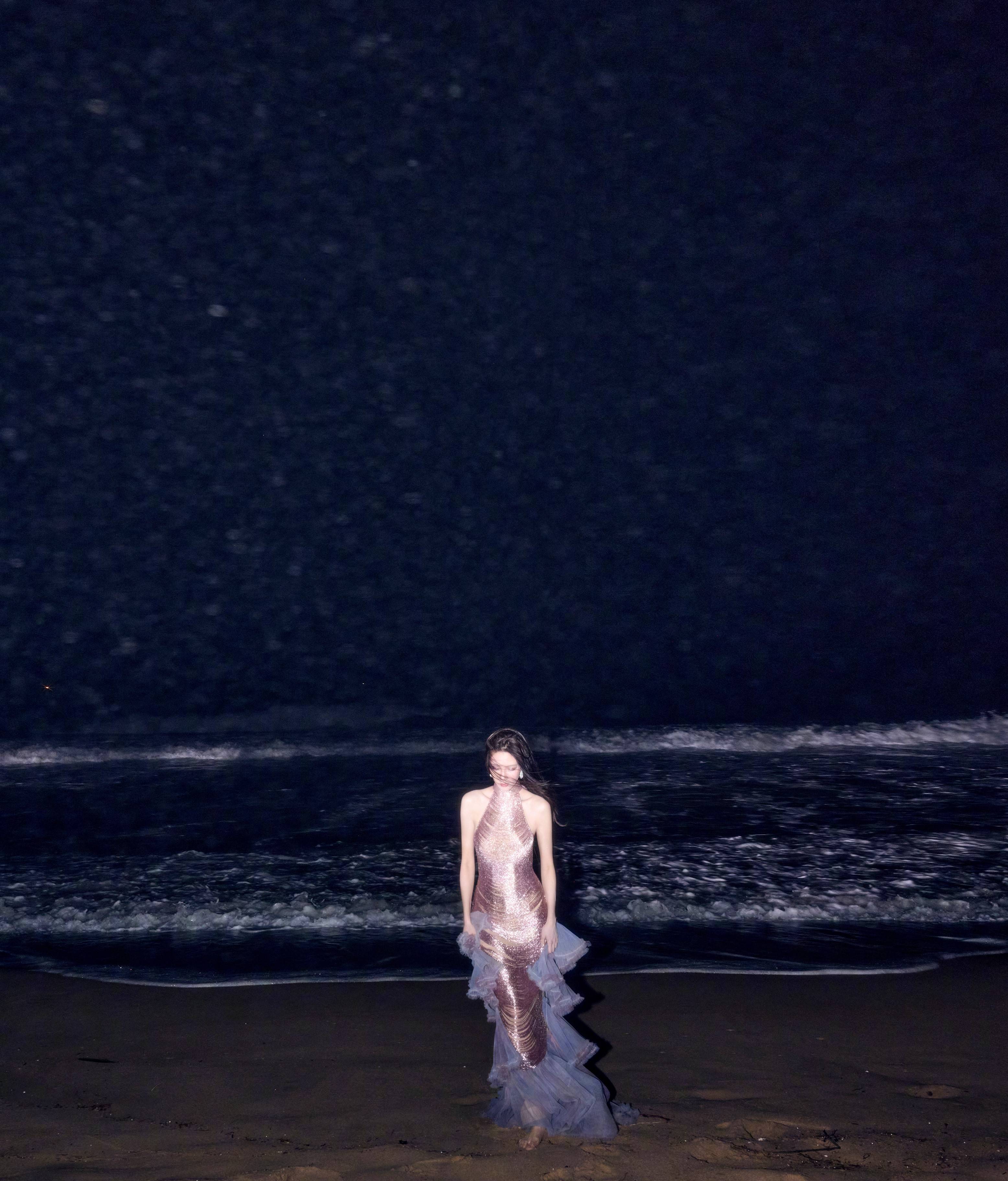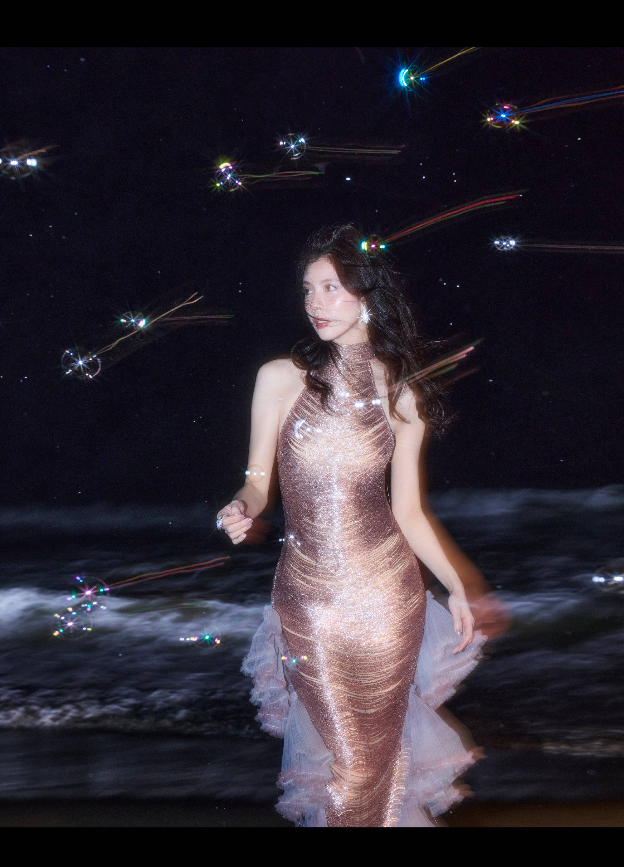 搜狐娱乐讯 10月28日,宋妍霏参加盛典的一组造型释出。图中,宋妍霏穿着金色挂脖连衣裙,发丝飞扬,眼神魅惑。