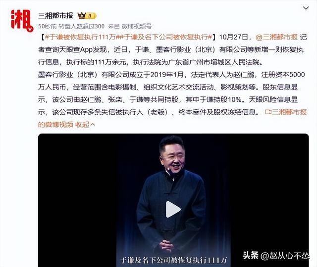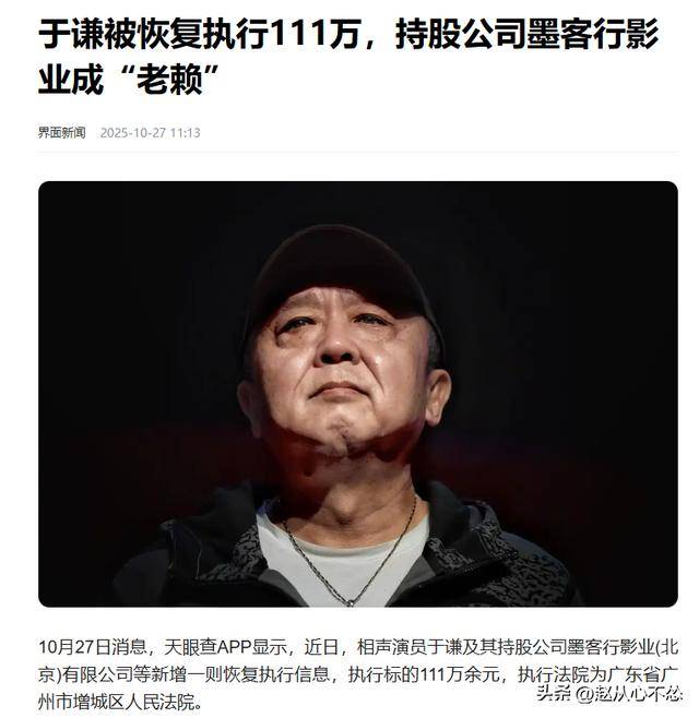 然而光鲜背后,危机早已潜伏。2025年10月27日,一则“于谦及其持股的墨客行影业被恢复执行111万元”的消息悄然传出,随后如野火般蔓延。