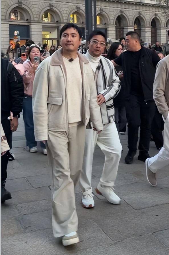 在米兰他身穿麂皮外套,搭配一条白色休闲裤,看着颇有企业家的感觉,果然对他来说,岁月沉淀下来的最后只剩气质了。