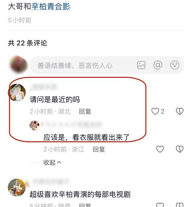 10月29号,有网友晒出与辛柏青的最新合照。这张照片虽然不是辛柏青的首次露面,但却是他的首次正面照,个中细节更是让诸多粉丝感到泪目。