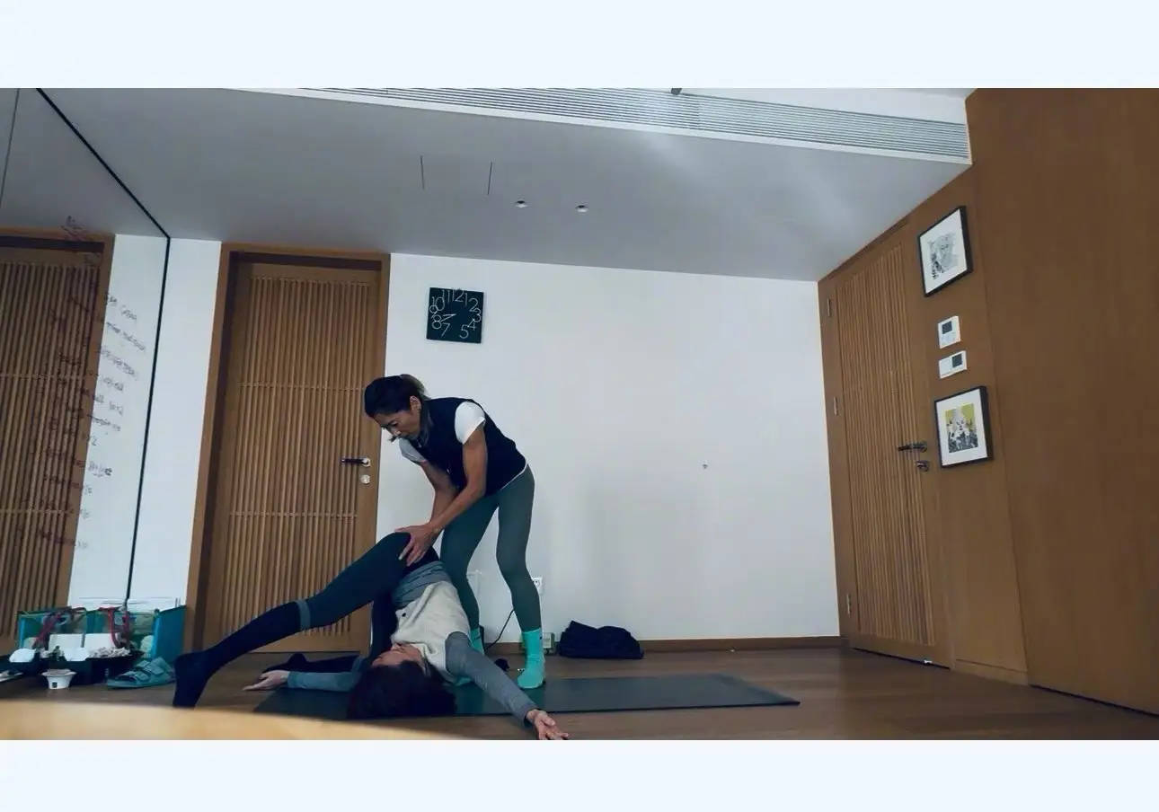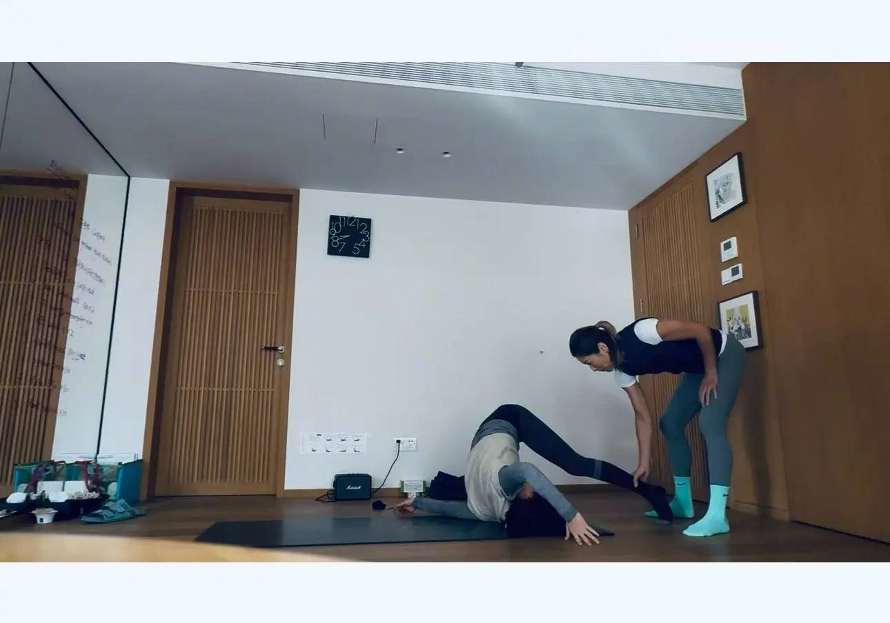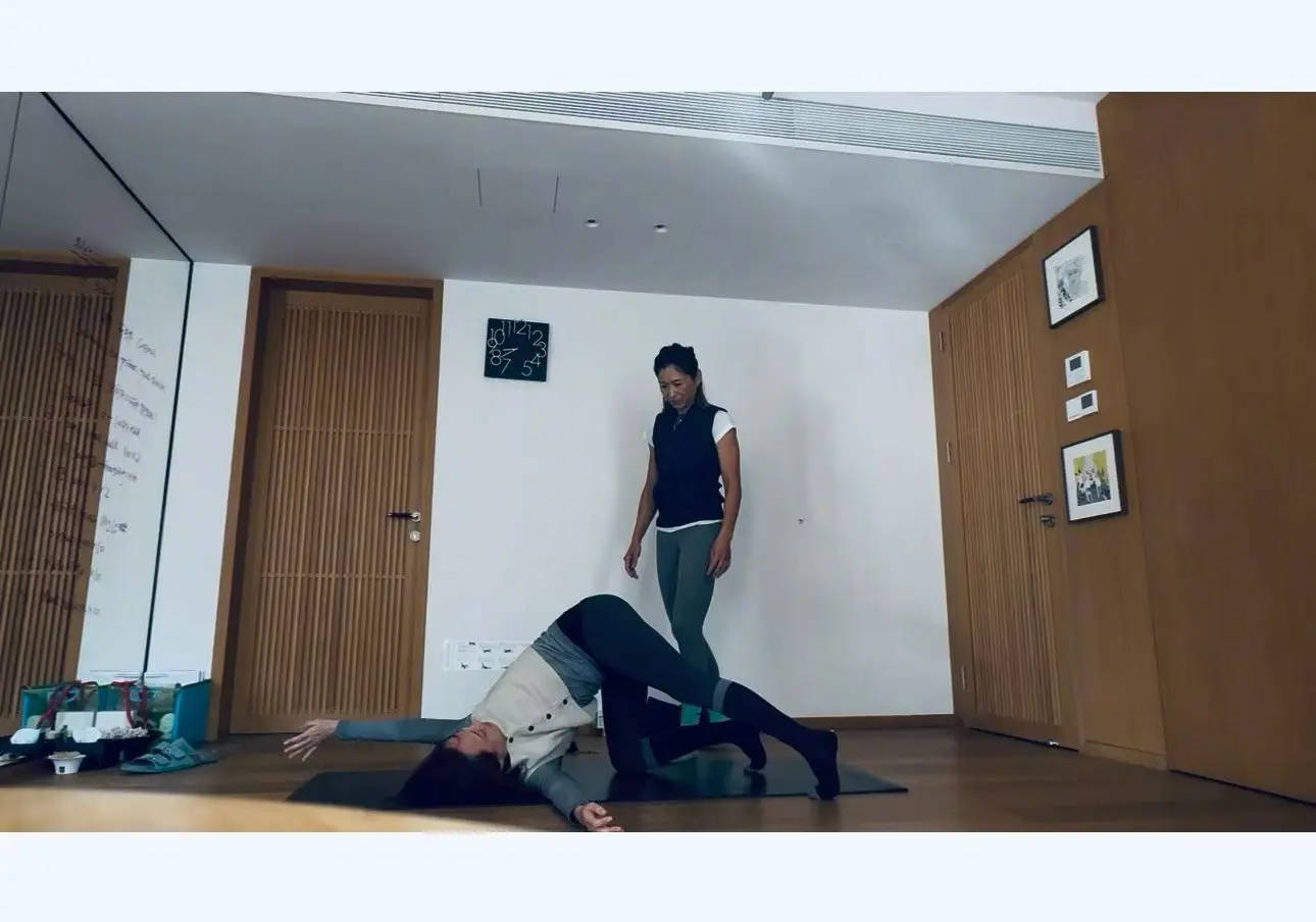 孙俪练习瑜伽动作。