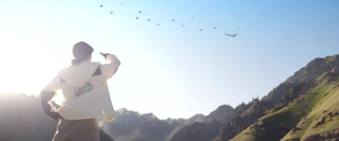 女孩放飞了一只康复的蓑羽鹤,那鸟儿展翅高飞,划破天际,而女孩挥舞着双臂目送它远去的身影,与天地山川构成了一幅绝美的画面。