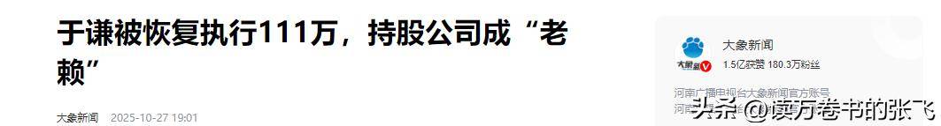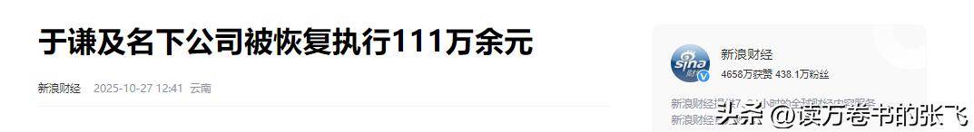 大象新闻——于谦被恢复执行111万,持股公司成“老赖”