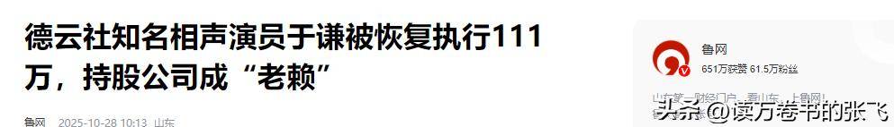 鲁王——德云社知名相声演员于谦被恢复执行111万,持股公司成“老赖”