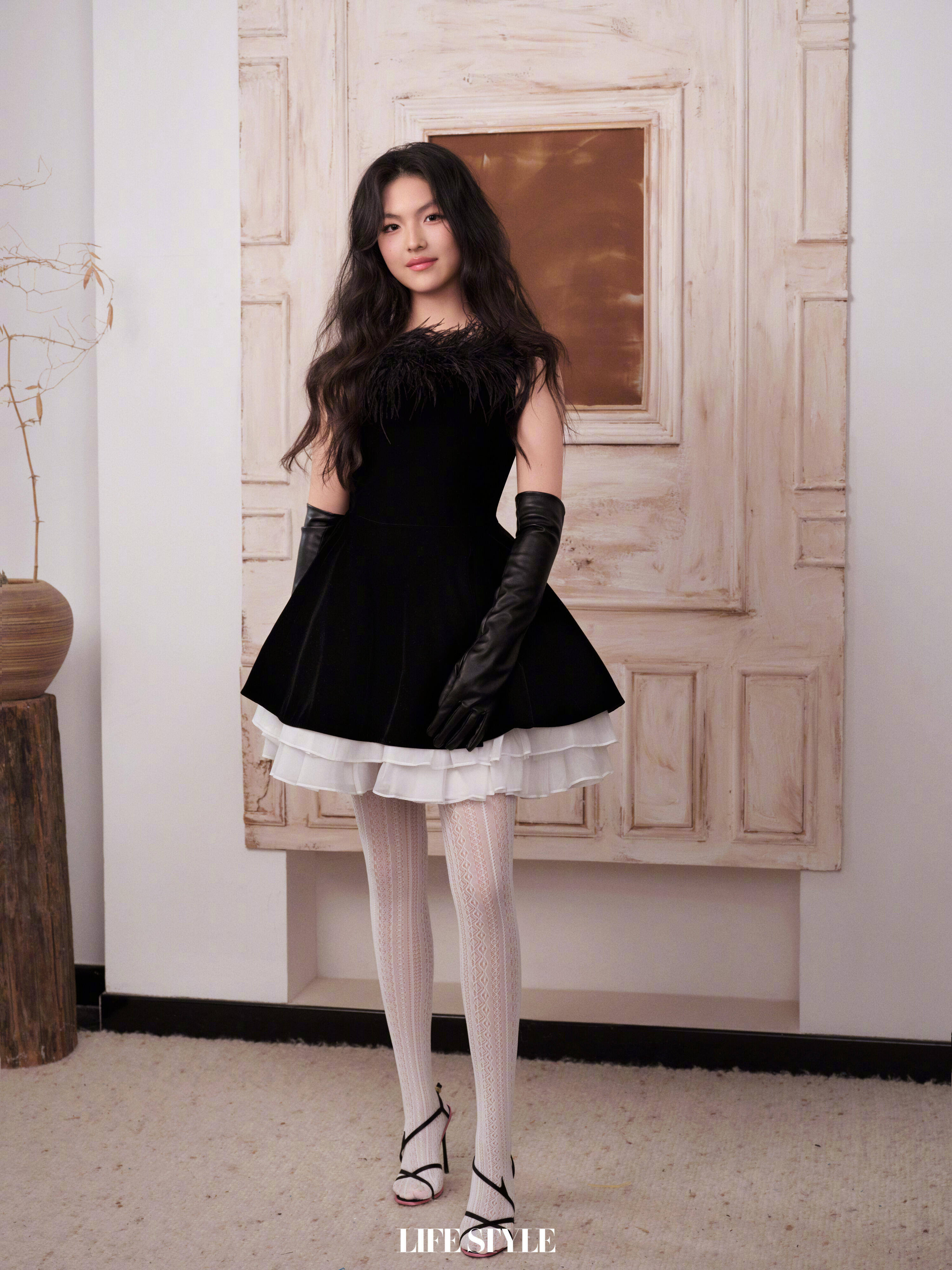 王诗龄穿黑色短裙,化身小公主。