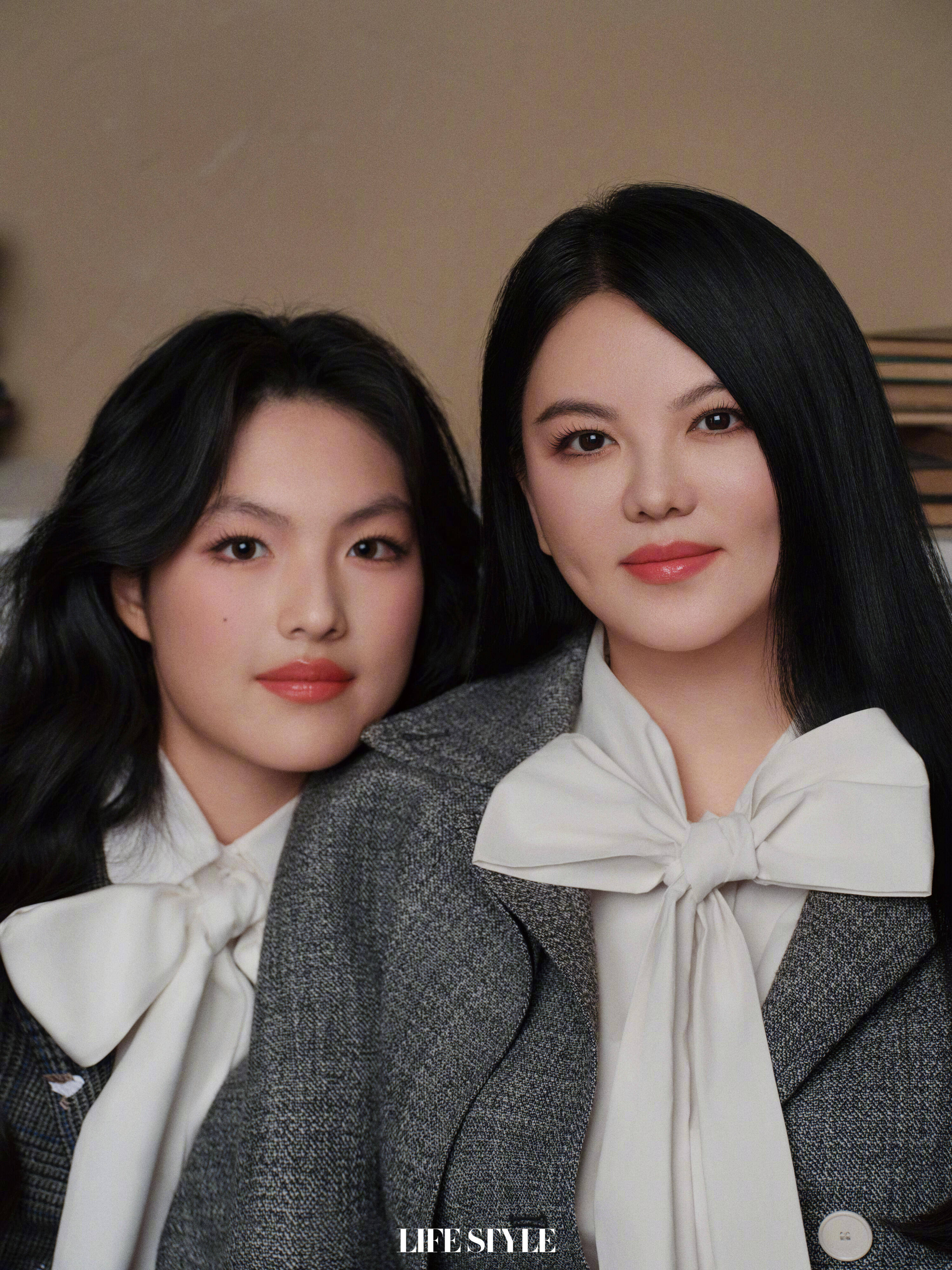 两人坐在一起,端庄优雅。