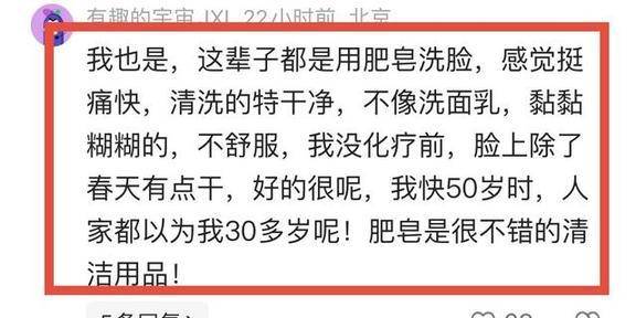 有些网友说,这辈子都是用肥皂洗脸,挺爽的,洗得干干净净、舒服得很,跟那洗面奶黏糊糊的比起来可好了。
