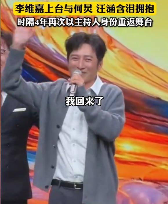 他登台时没说长篇大论,就一句哽咽的“我回来了”,然后和何炅、汪涵紧紧抱在一起。