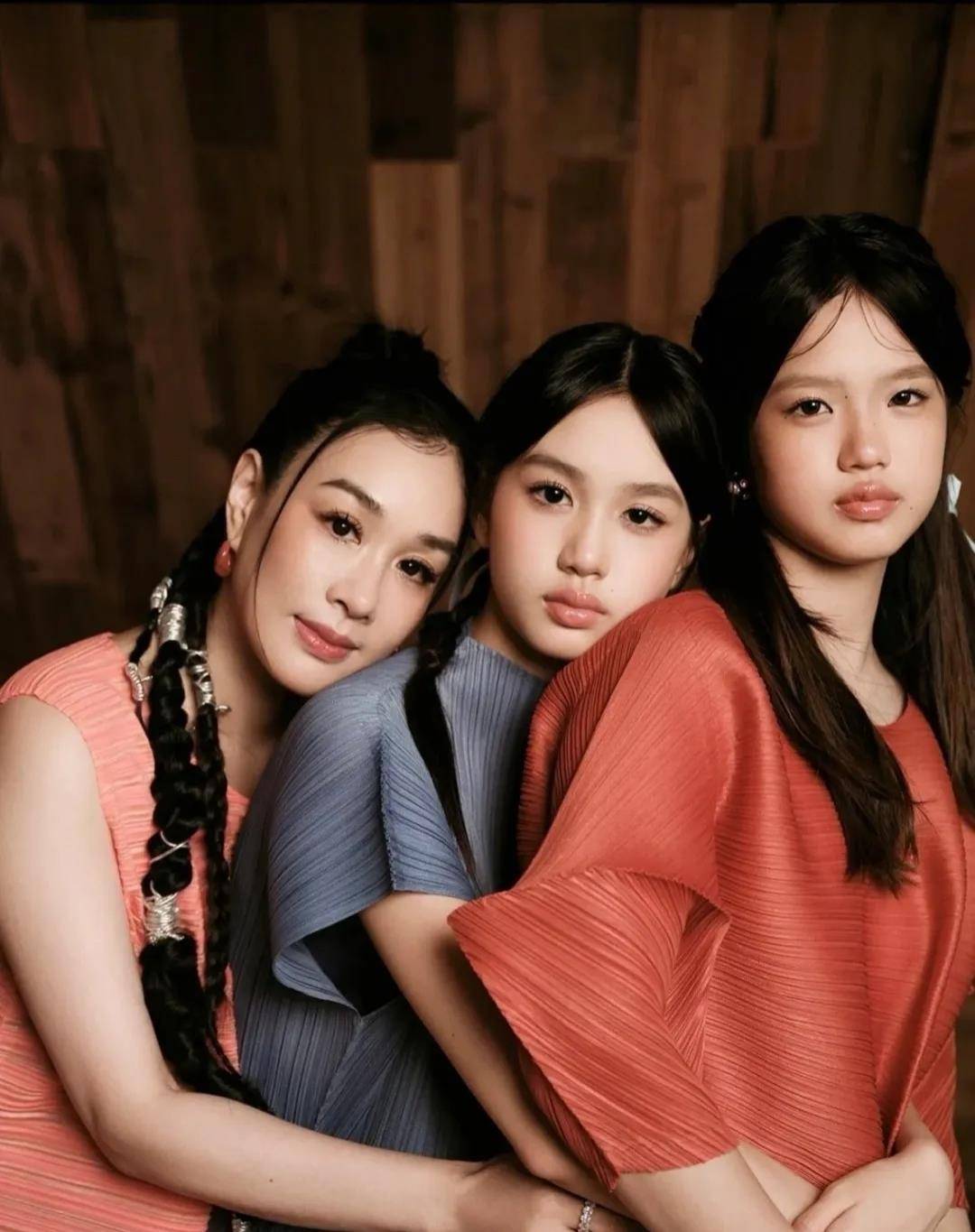 钟丽缇跟女儿们一块儿拍照,简直跟姐妹一样,美得不分上下。