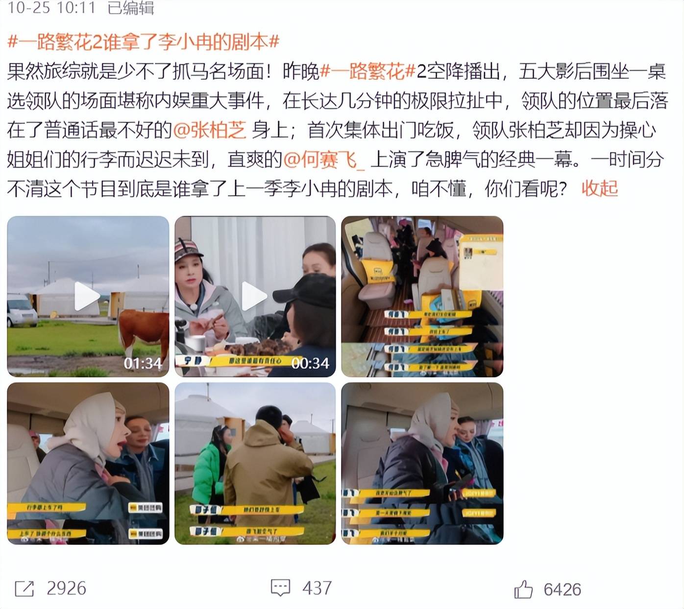 各位读者,你们在看哪档综艺节目呢?《一路繁花》是一档自带热度和关注度的综艺节目,让大家没想到的是,《一路繁花2》竟选择低调定档,可看完更新的节目后,很多网友都表示:有人拿到“李小冉”剧本,本季直接发生矛盾,幸好有宁静,这究竟是怎么回事呢?