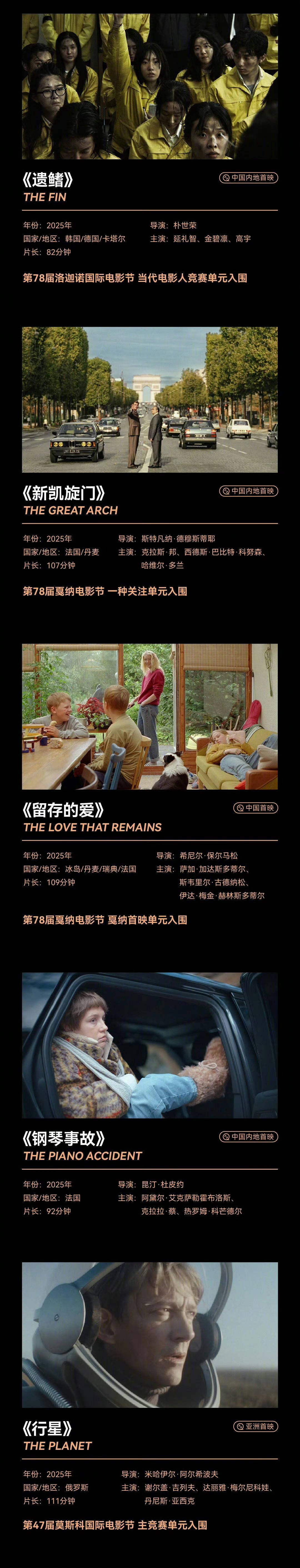 搜狐娱乐讯 2025金鸡国际影展发布国际新作片单,来自戛纳、柏林、威尼斯、洛迦诺、圣丹斯等国际电影节展的28部新片将展映。包括匈牙利导演伊尔蒂科·茵叶蒂执导、梁朝伟和蕾雅·赛杜主演的《寂静的朋友》;以及即将同步北美上映的《惊天魔盗团3》等。完整片单如下↓ ↓