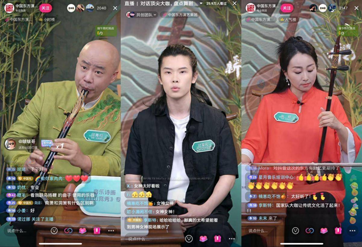 今年6月,中国东方演艺集团联合抖音直播发起“东方有新艺”线上内容大赛,由《唯我青白》《大江东去》《江山竞秀》《只此青绿》剧目主创人员等担任评委,选拔声乐、器乐、舞蹈赛道的优秀抖音主播。活动吸引了4万名抖音才艺主播参与,活动话题#东方有新艺 在抖音播放量超2.7亿次。