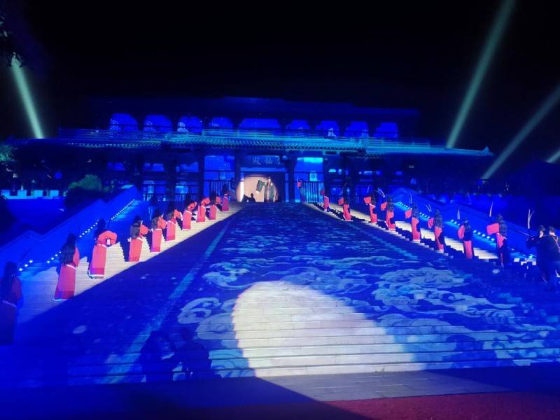此外,景区内高9.5米、重120吨的秦始皇雕像在演出中通过光影技术“活化”,双手捧起酒樽,以庄严而亲切的姿态迎接四海宾朋,成为演出的标志性场景。这一设计不仅强化了历史与现实的对话,也为游客提供了独特的互动体验。