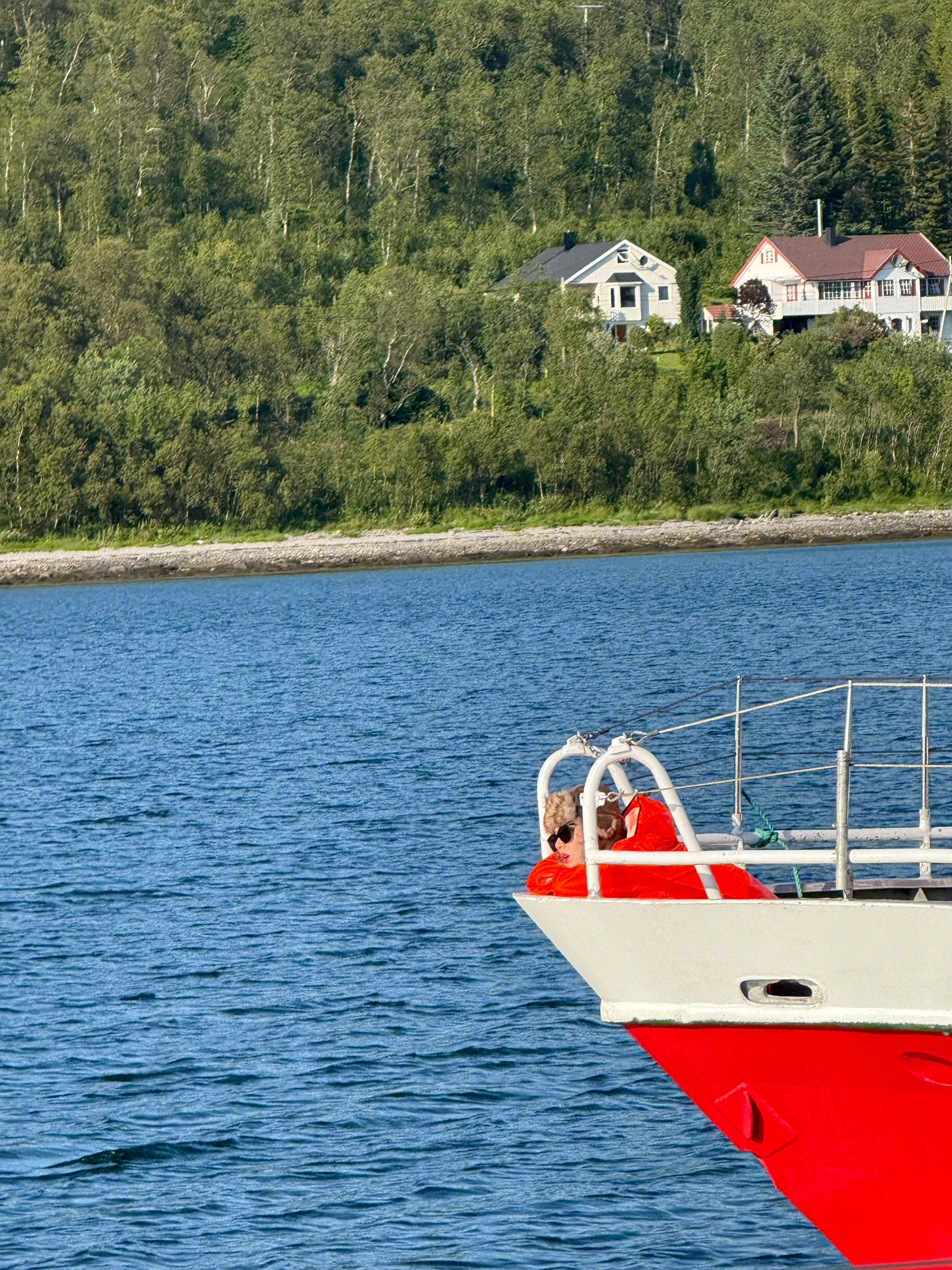 马思纯趴在船上,松弛感十足。