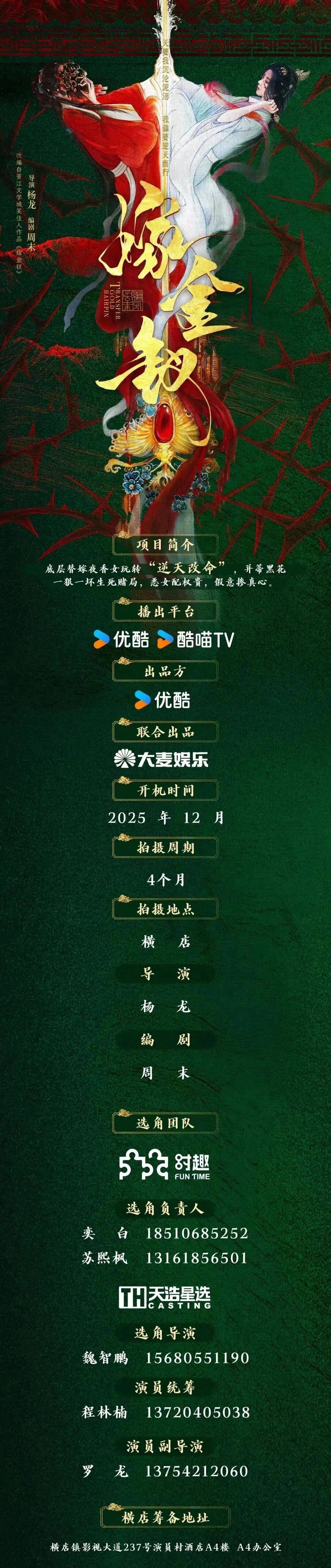 免责声明:戏客Seeker公众号(“本平台”)中全网组讯的信息、内容(“组讯信息”,包括但不限于影视项目名称、项目介绍信息、出品公司信息、导演信息、选角团队信息、拍摄相关信息、联系方式等)均来源于内容信息相关方提供或互联网公开信息。本平台不对组讯信息的真实性、准确性、完整性、及时性、关联性、适用性及安全性提供任何明示或默示的担保。请您谨慎参考或使用组讯信息,并确保您的人身、财产安全,本平台不对您使用或参考组讯信息而造成的后果承担任何责任。