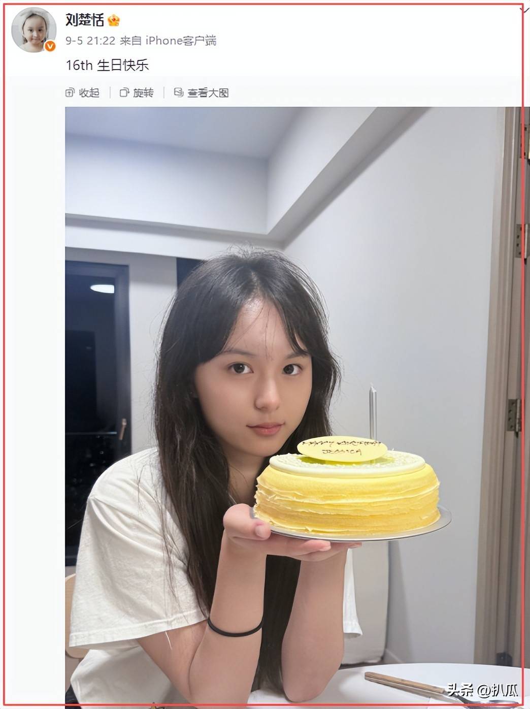 9月5日,刘楚恬曾发布社交动态,晒出了自己的生日照片。