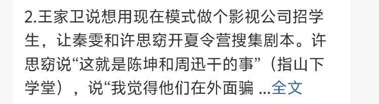 其中最让网友觉得三观尽毁的,还是王家卫指明让编剧开夏令营搜集剧本,许思窃随后就说出了陈坤周迅的大名,暗示他们骗稿。