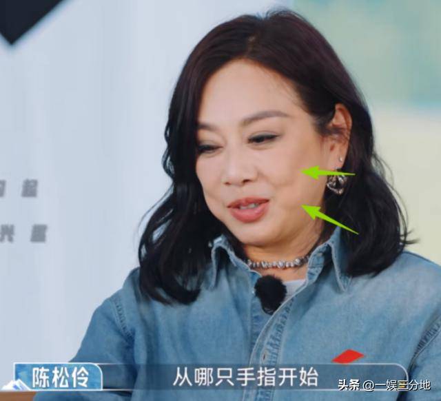 在怼脸的镜头下,陈松伶的苹果肌分成了上下两块,中间突然出现一条横线。