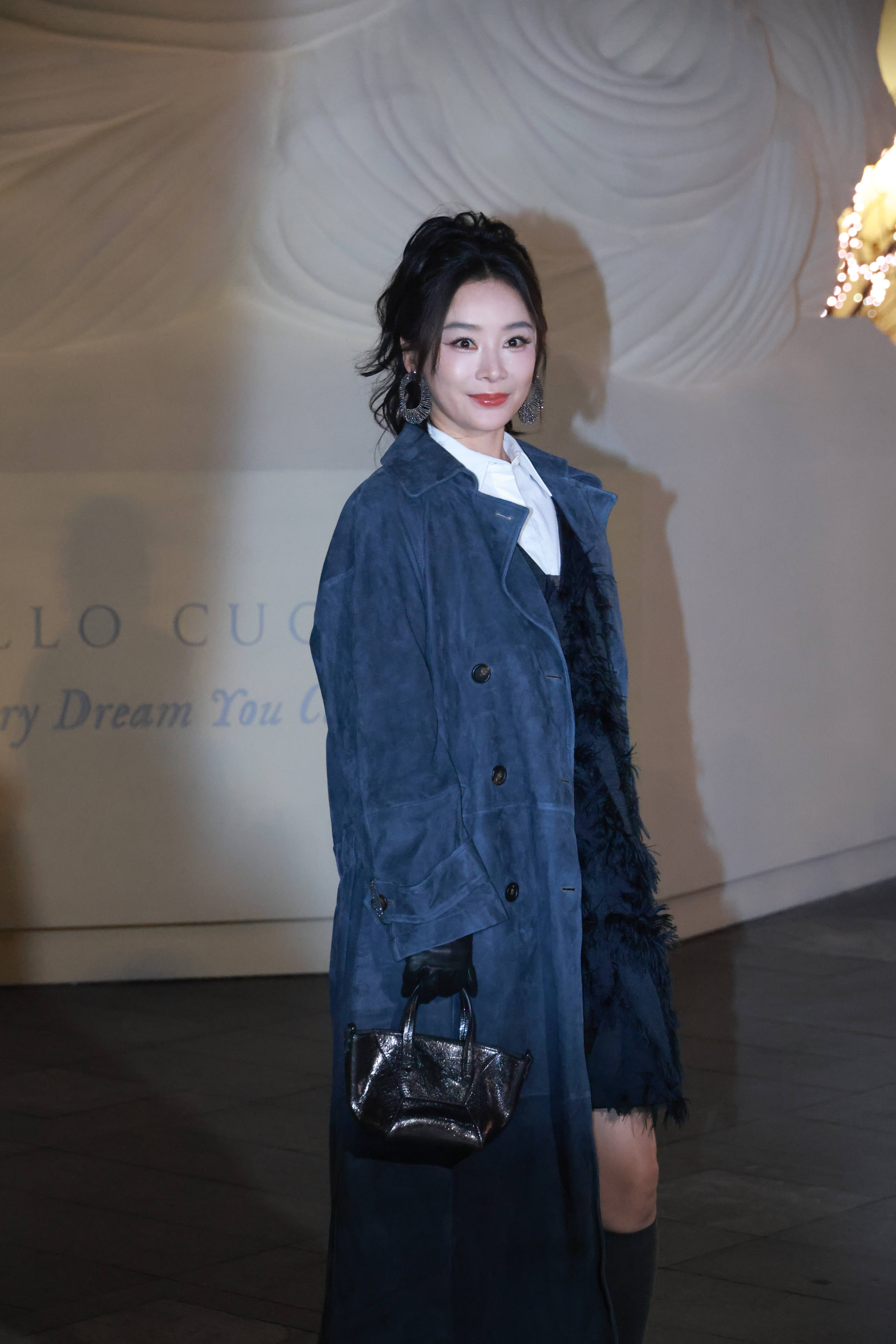 袁姗姗则是蓝色风衣造型,松弛自信。