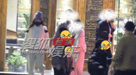 章子怡走在最后面,颇有大家长的姿态。