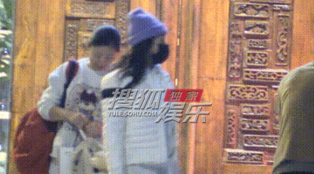 章子怡等着孩子们先上车。