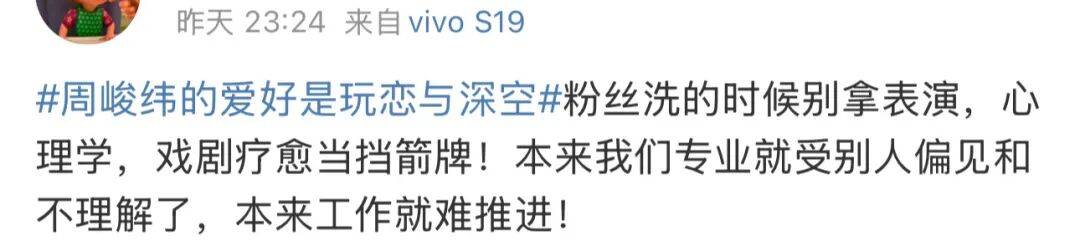但周峻纬好歹在圈里混了这么多年,粉丝基础还是有的,面对这波攻势,喜欢他的人火速下场维护,要说“玩游戏是个人自由”,南风尚且能理解;可硬说他是“为了心理学研究”,甚至“为演技积累素材”…不是,你们自己听听这像话吗?