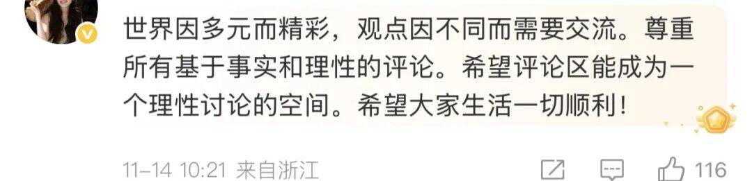 “不用被无关声音影响,继续做自己就好”、“世界因多元而精彩,观点因不同而需要交流”、“道歉是为无心之失负责,不是为了承受无底线的网络暴力”...