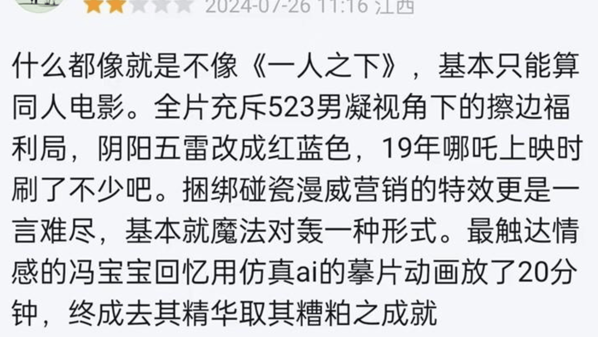 其实,之前的电影《封神》就曾经遭遇过类似的批评,过分强调妲己的妩媚,剧情线华而不实,内容略显空洞。