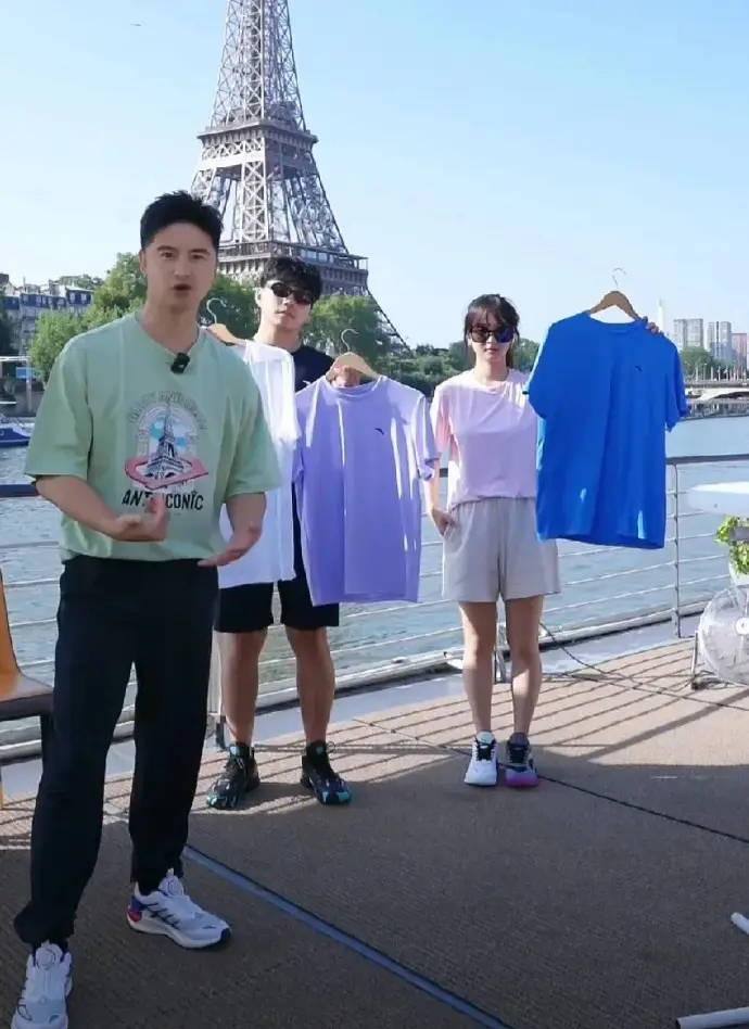 田亮与叶一茜在巴黎铁塔下直播卖货。