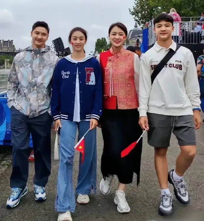 此前,田亮一家四口现身巴黎为中国奥运健儿们加油。