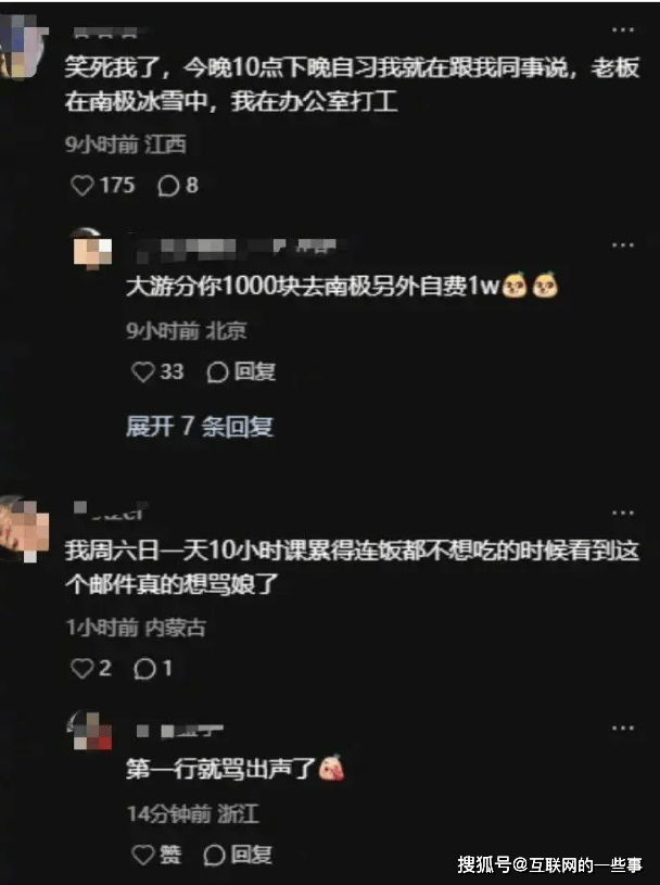 很多网友留言说:“如果能去南极,我也愿意多加几天班。”也有人说:“这比年终奖还实在。”