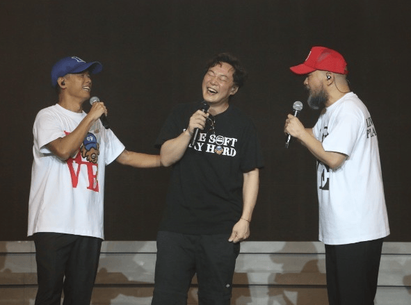 陈奕迅在香港以嘉宾身份为林海峰演唱会助唱,他的打扮很随意,卷发下面是锃亮的大脑门,虽然下巴缝了30多针,但医生的技术很好,看不到一点疤痕。