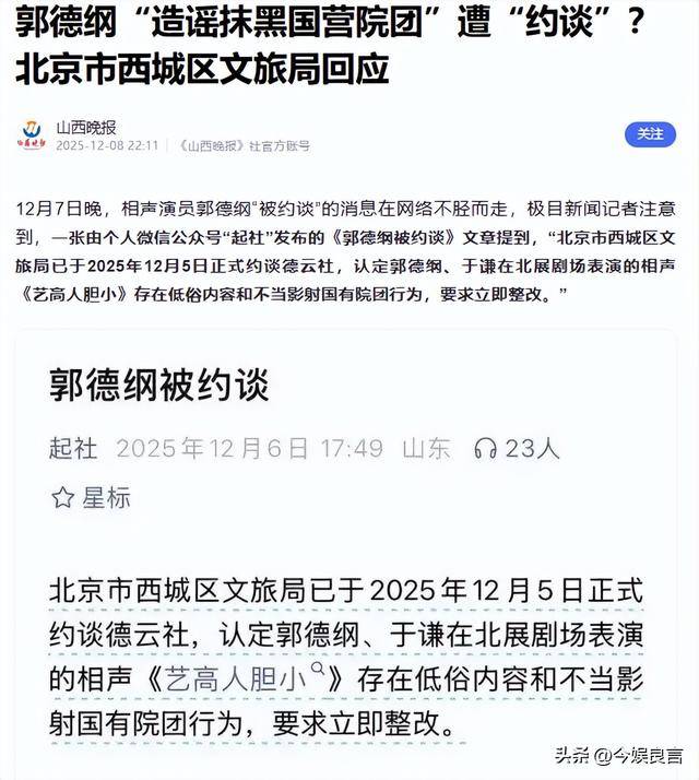 更没人预料,当文旅局的约谈通知送达德云社后,“墙倒众人推”的戏码就残酷上演。