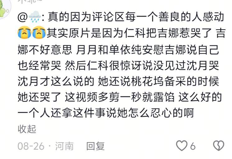 可看了完整的节目,就会发现她这句话放在当时的前因后果下,其实很合理,还是出于安慰别人这样暖心的举动,并没有可以挑刺的地方。