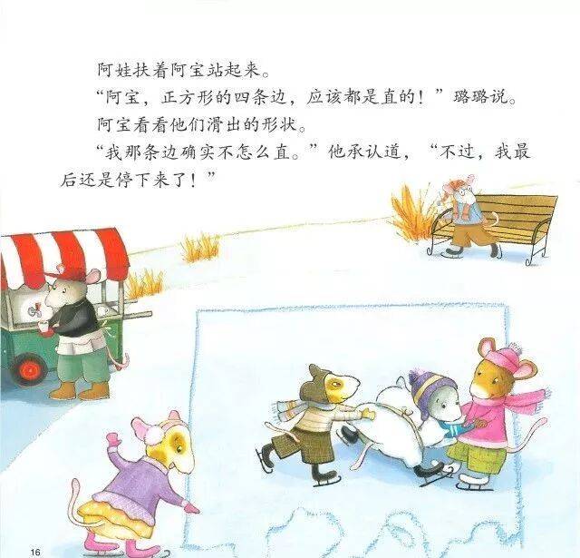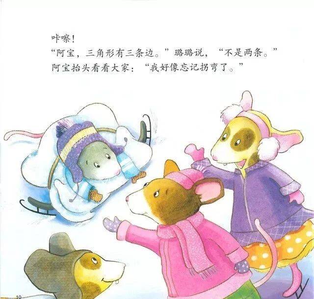 璐璐指着冰面:“看见了吗?鼠鼠三胞胎刚滑出一个三角形。”