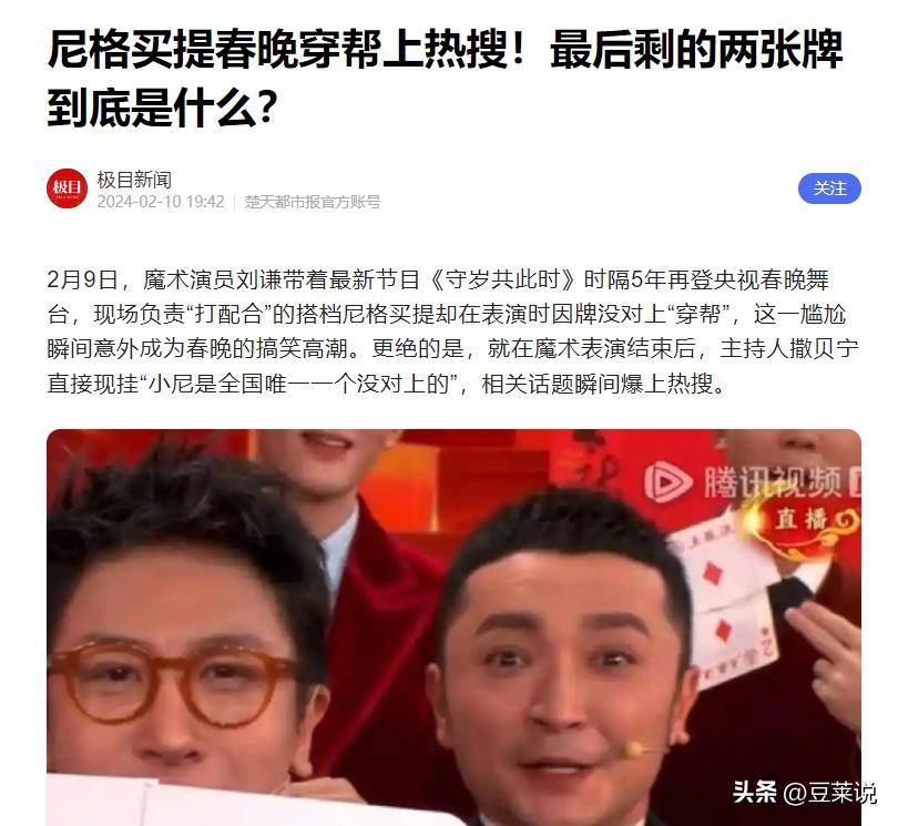 信息来源:尼格买提春晚穿帮上热搜!最后剩的两张牌到底是什么?