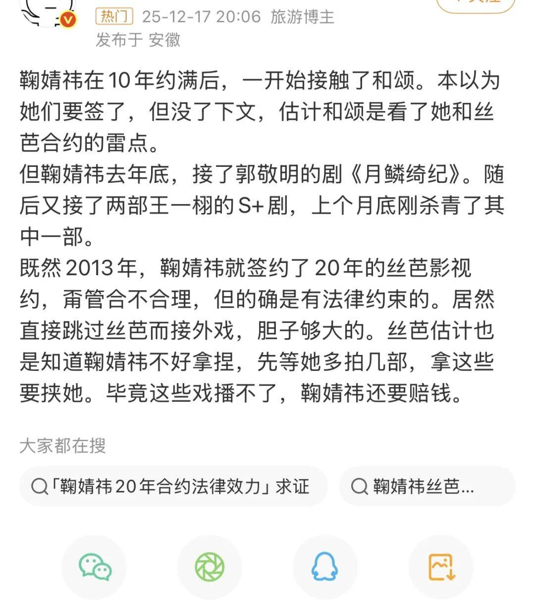 丝芭说了,合同存在,字也是你鞠婧祎签的,还在合同期内鞠婧祎私自对接品牌和剧组就是违约。
