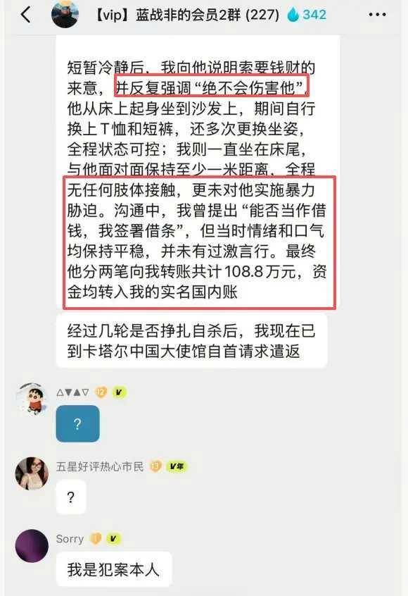 大家以为嫌疑人早该潜逃到外太空,结果人家大大方方联网冒泡——先给蓝战非发私信道歉,被拒后干脆充值粉丝群年费,当场开麦直播“翻案”。